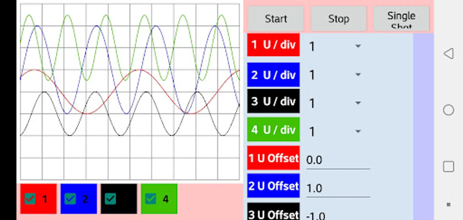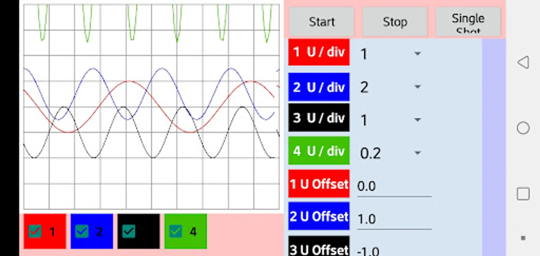 With this oscilloscope simulator you will be able to observe the signal that you want to measure with the parameters that you decide to put on it, you can modify it according to your preference.