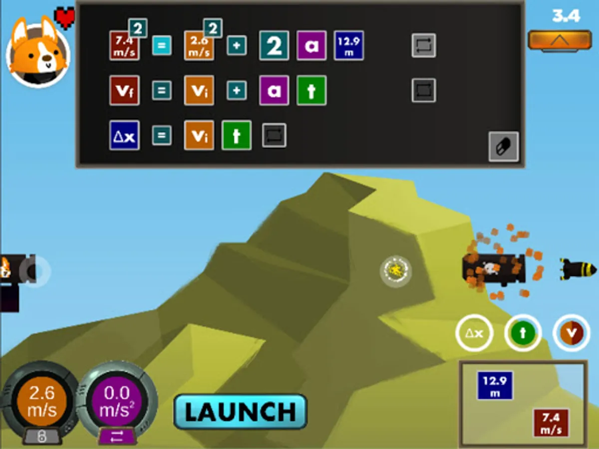 -Use pres-set launch values and measured variables in a drag-and-drop equation to solve for unknowns.