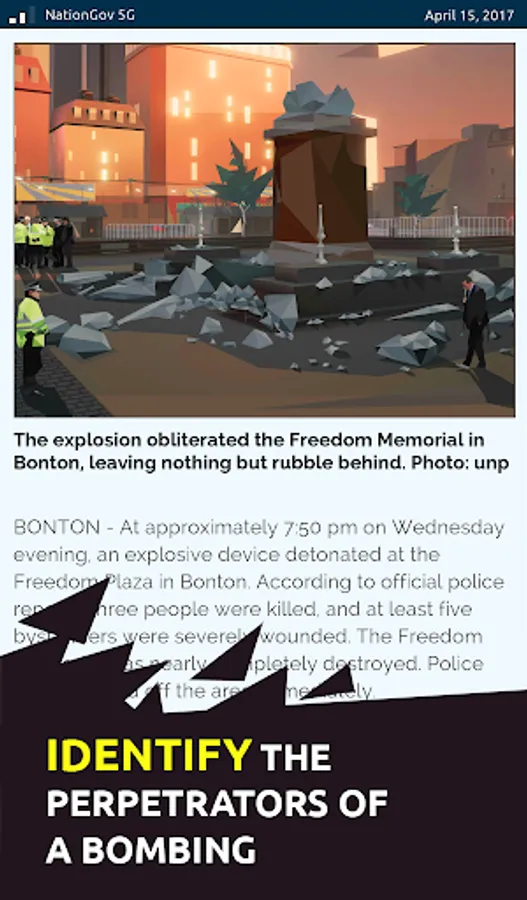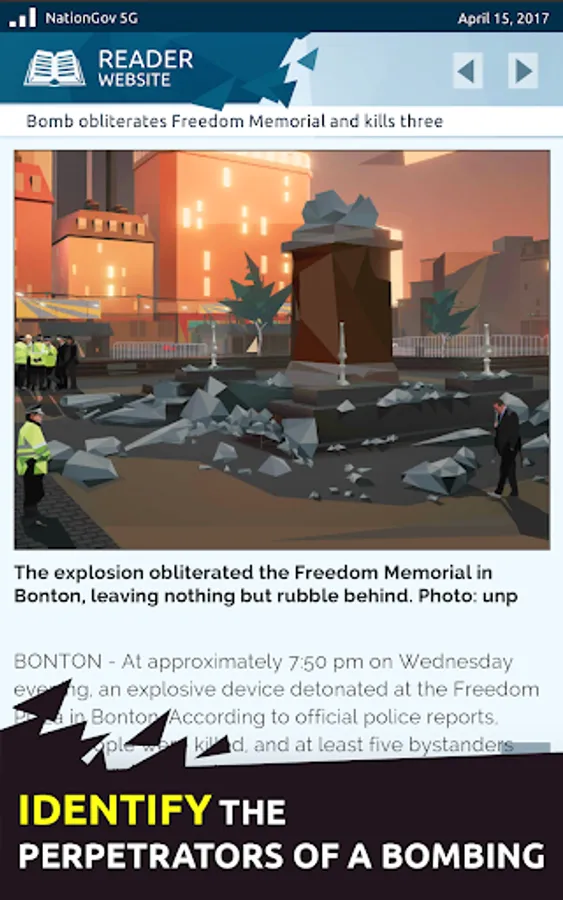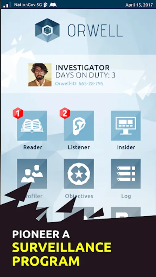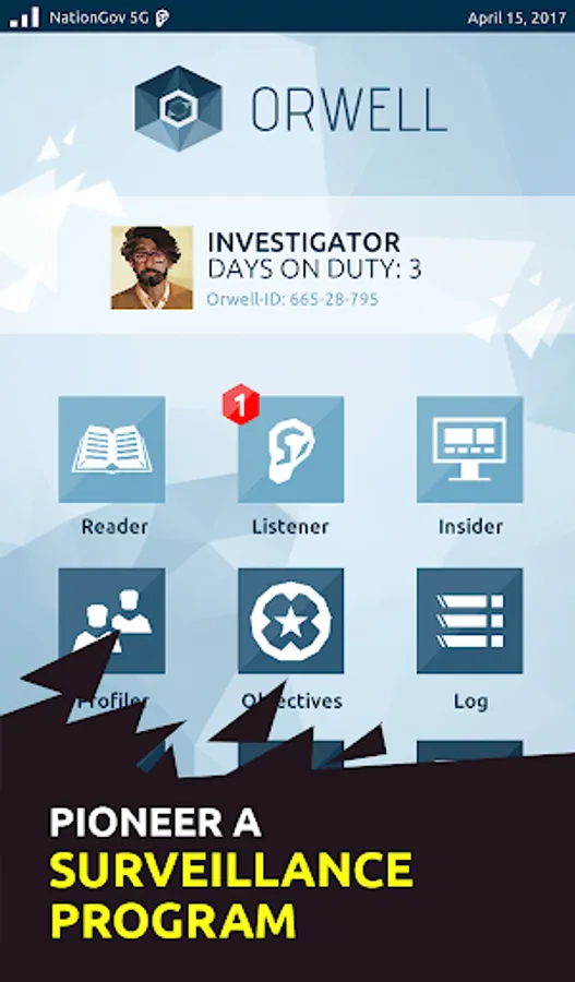 Selected from thousands of candidates, you are Orwell’s first human researcher. And when a terror attack rocks the Nation’s capital city of Bonton, Orwell, and you, are immediately put to the test. Starting with a single person of interest, you'll help the security forces build out and profile a network of potential culprits.