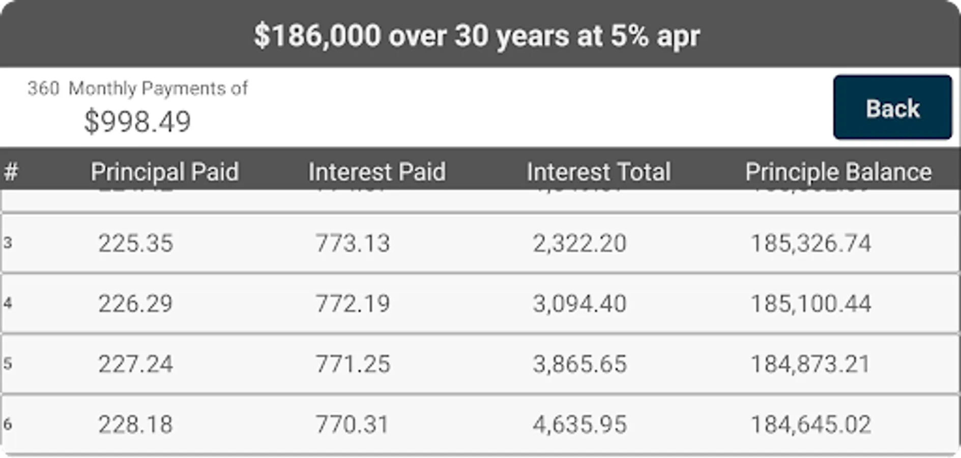 This app will help you see how a loan is calculated and laid with with respect to interest vs principle.