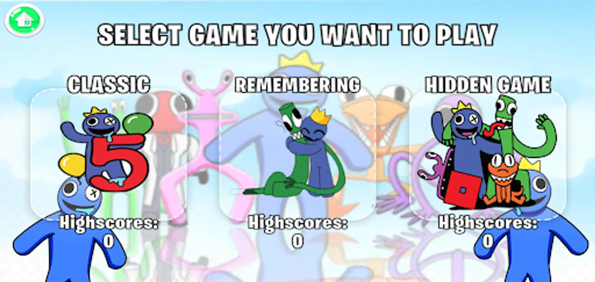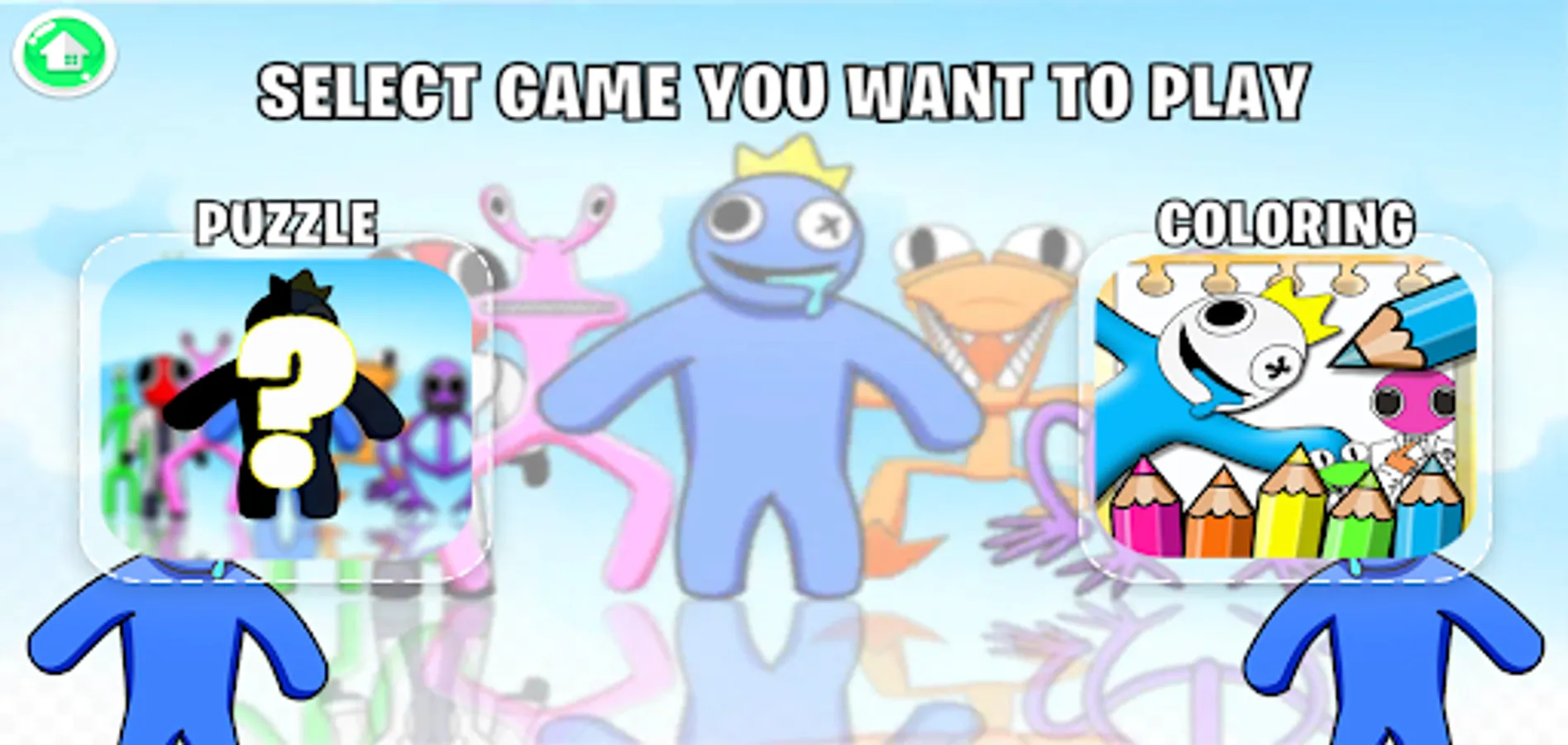 You can also select between two games Rainbow Friends Coloring Book and Rainbow Friends puzzle game