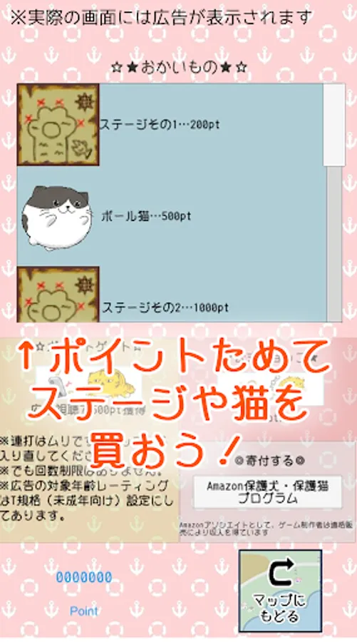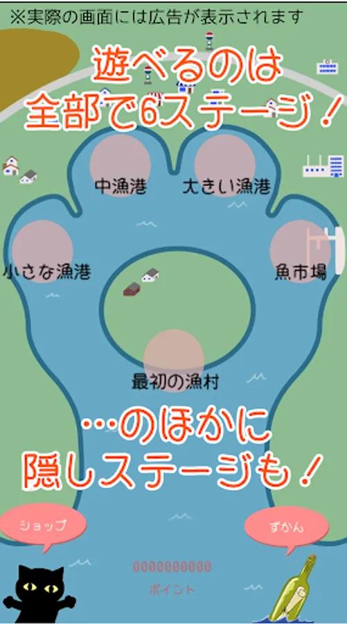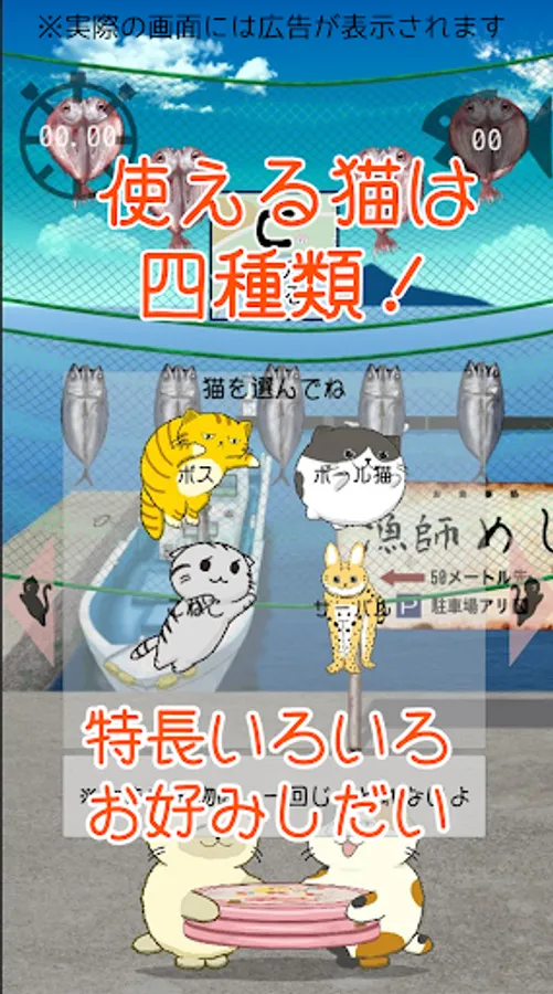 とばす猫を落とさないように気を付けながら、制限時間内に干物をぜんぶゲットしよう!