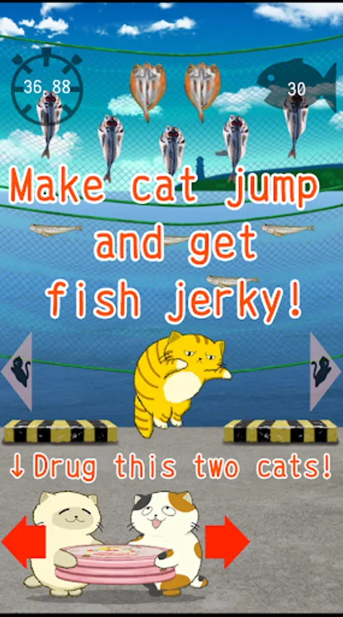 Cats who were in trouble because they could not catch fish enogh, started jumping for dried fish.