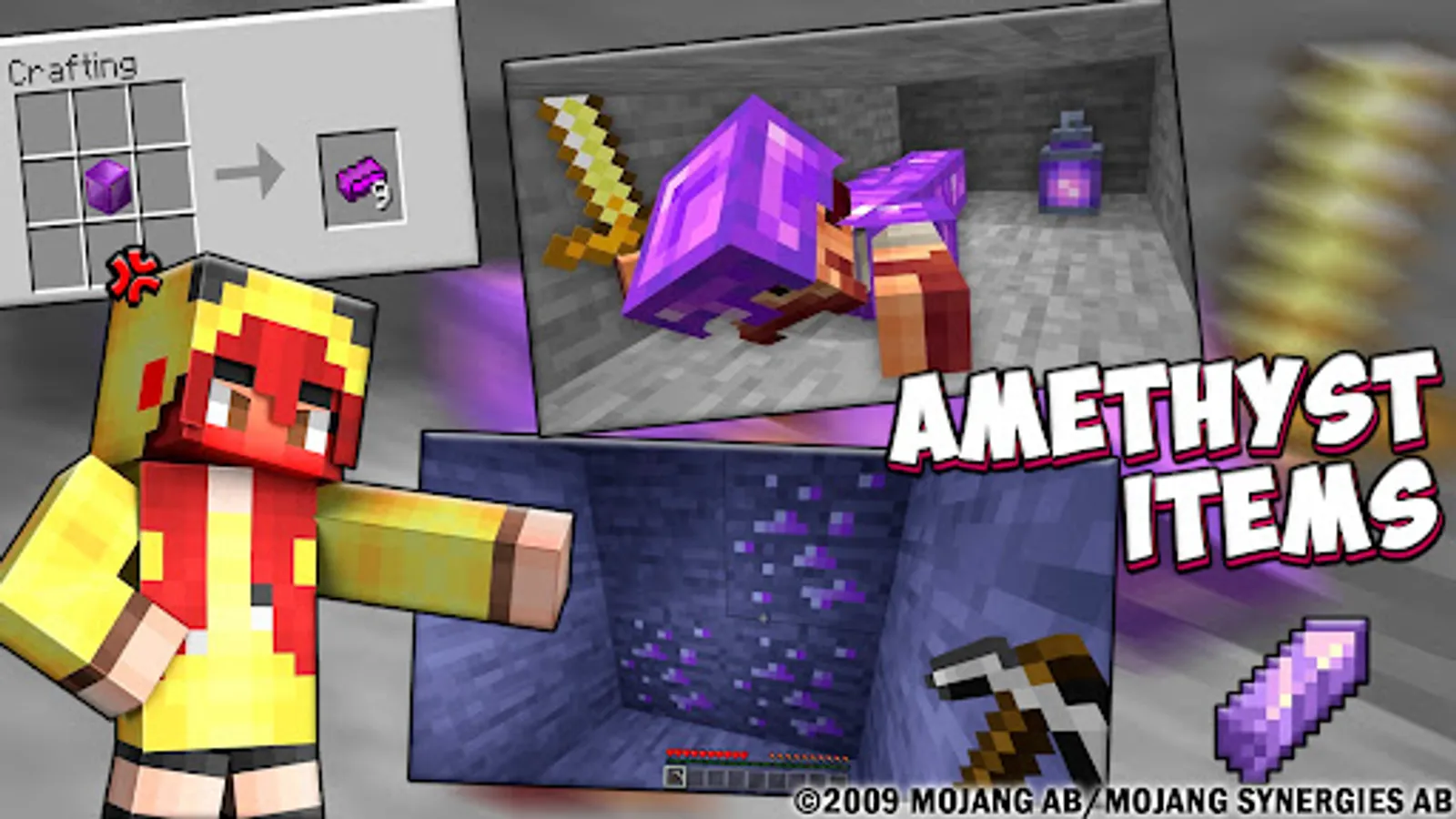 Wecome, dear craft players. On our developer page you can find new mods, add-ons and maps for craft. Here is a craft ore add-on that adds an amethyst ore to craft world. The Amethyst ore is a unique ore ! With it you can craft new items like the sword and the Amethyst Apple, The Amethyst also adds a new economy as it is a new mineral. You can find the Amethyst by mining at the Y level 13 !