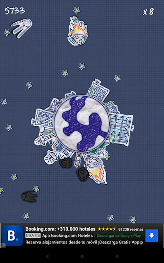 Defend your planet from the constant attack of asteroids, satellites and space gentlemen throughout history in a frenetic game where if you blink, you die. Resist long enough to advance civilization and forge a record that lasts forever.