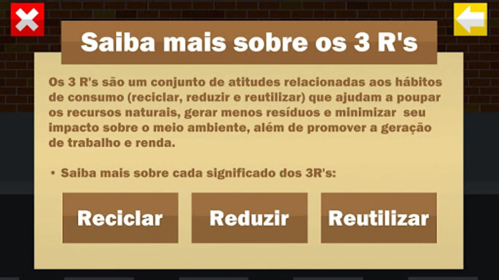 This is an educational game that aims to show how waste can be used and disposed of in a sustainable manner using fun methods to encourage awareness of the care that should be in your city.