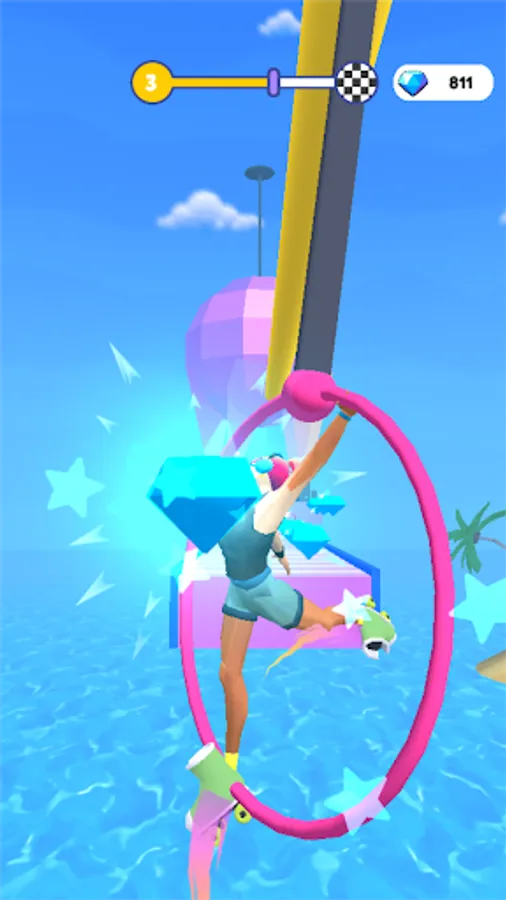 Dodge obstacles to get as many Hoops to the finish line as possible in one piece! At the end of the level, a Hula Hoop party awaits you, The more the Hula Hoops, the cooler the party!