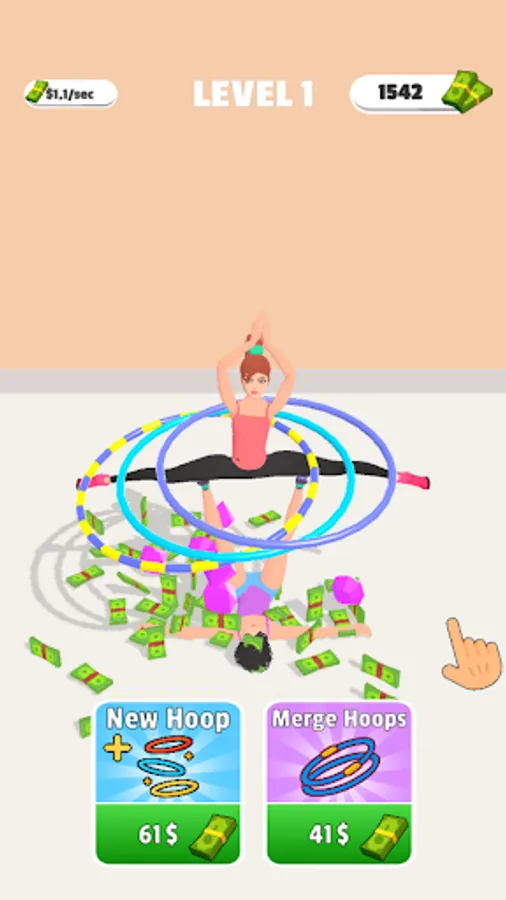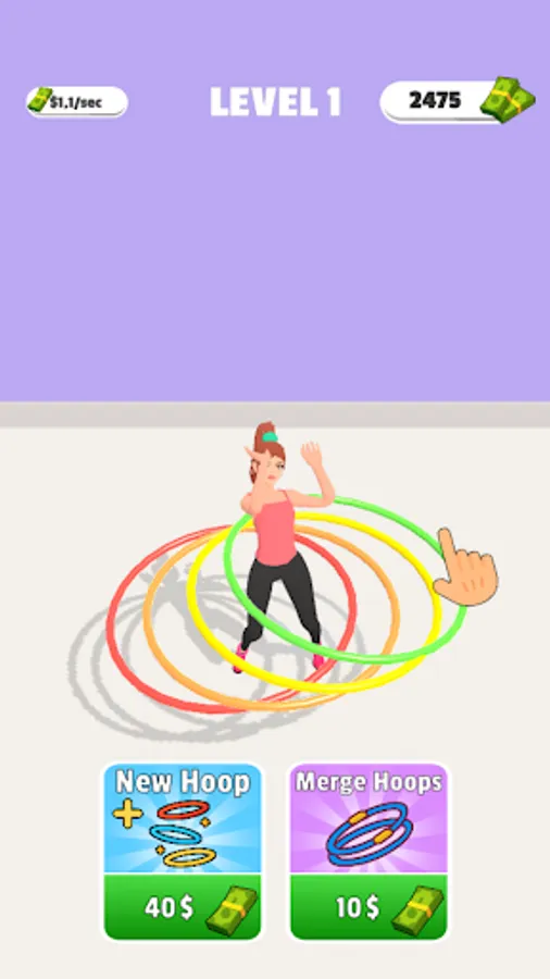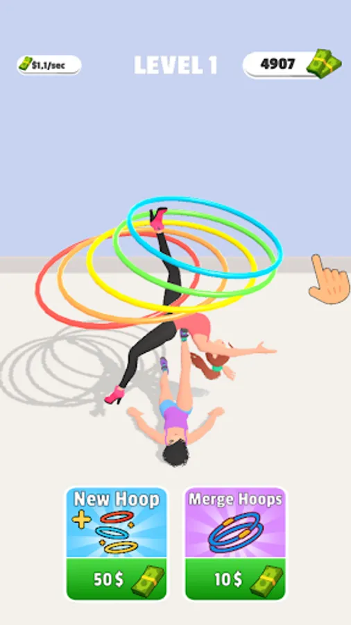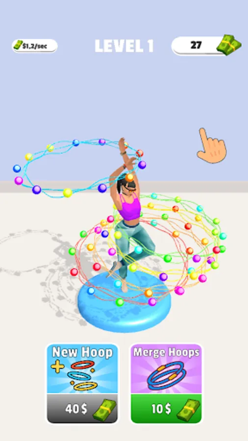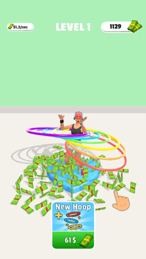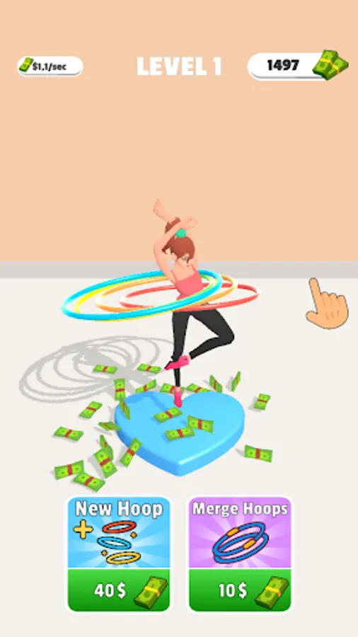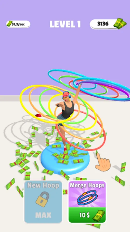 To get more money you can tap on the screen to increase the spinning speed of all the Hula Hoops.