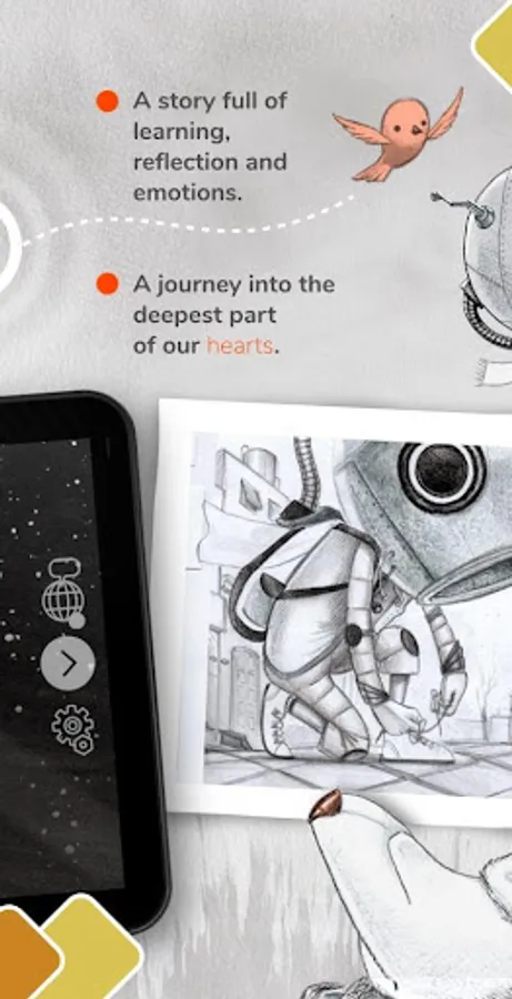 The great little personian is an interactive book with animations, sounds, music and a lot to discover. It is perfect for sharing a moment of reading with our children and go with our character while helping him and discovering all the story has to offer.
