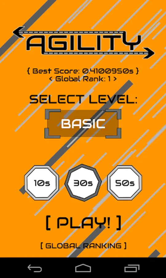 Welcome to a new experience in time-reaction games. Play Agility, get better at it and compete with your friends thanks to its integration with Facebook and Twitter, or against strangers through the worldwide rankings. Are you ready to test yourself and be the best? Go!!!