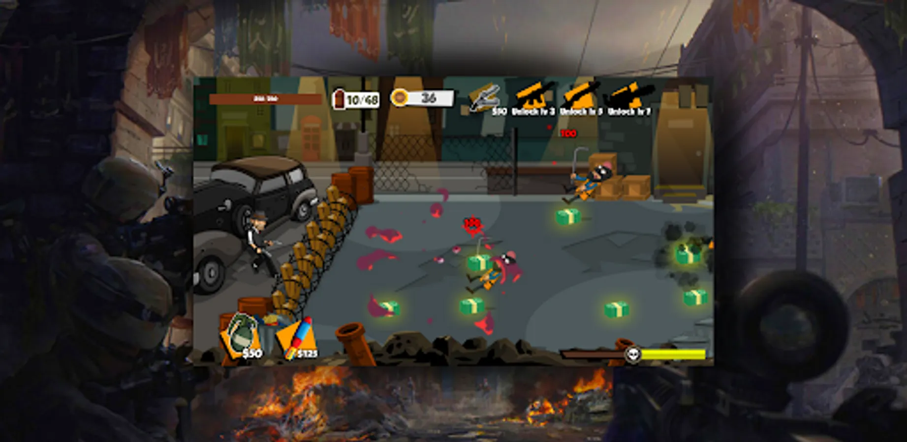 Get ready, upgrade your guns and sniper rifles to feel yourself as a real gangster shooter! Get ready to face nonstop attacks with Gangster Release. In this exciting game, you will encounter all kinds of gangsters and you will have to use all your weapons to take them down. Pistols, sniper rifles, mini guns, shotguns, assault rifles, explosives and even sticks will help you.