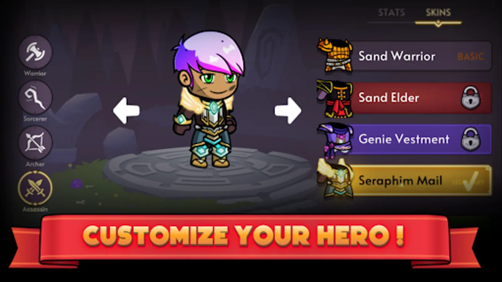 Play as a swordsman, an archer, a sorcerer or an assassin! Unlock all the weapons from rare to legendary, improve your characters and march forward into your adventure!