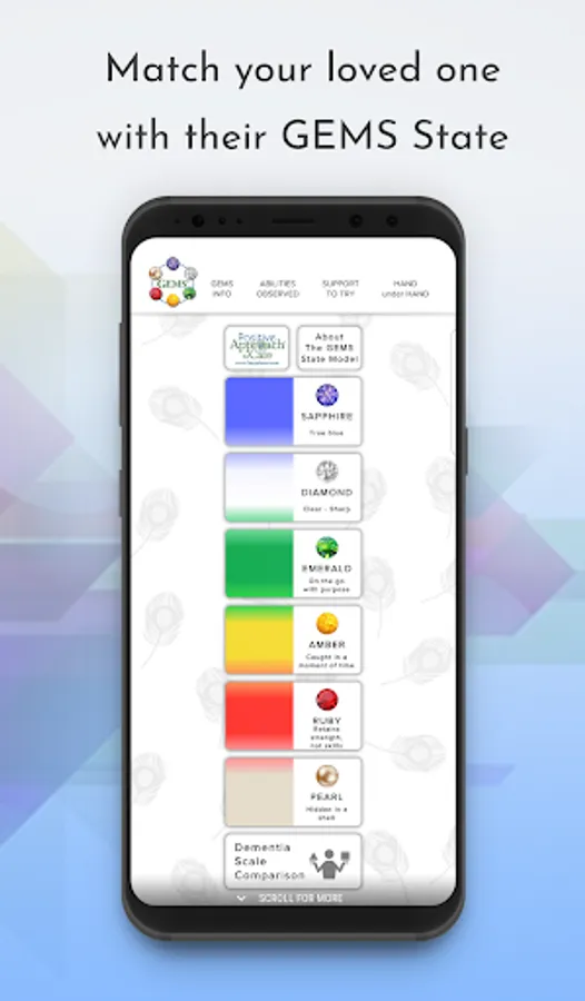 Teepa Snow and Positive Approach to Care (PAC) believe that when caring for people living with dementia those of us with healthy brains must be willing to change and adapt. With this essential GEMS app, you can join us in this mission by learning about the GEMS State Model, a scale that focuses on abilities that are retained throughout the progression of dementia. This app will help you learn the characteristics of each GEMS state and ways to provide the optimal care for that state. The app includes a dementia scale comparison chart, video clips of Teepa Snow explaining each GEMS state, and video and photos depicting our Hand-under-Hand technique to guide and assist with everyday tasks. The GEMS app will help shift the way that you understand and provide care for those living with brain change.