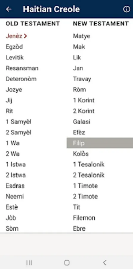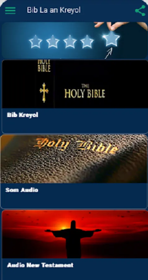 Bib Kreyòl Ayisyen known as Bible Creole Haitien with Audio New Testament. This is a free android application with the Holy Bible in Haitian Creole language who is working better online using internet connection but few sections can be accessed offline. Bib Kreyol app give you more than a simple bible having daily devotionals sections, hymanl section and daily quotes from the bible. In last version we include daily prayers, audio podcasts and many Christian news. We wait your messages if you have any suggestions at our contact section in the app. Read the bible, enjoy and share it with your friends!