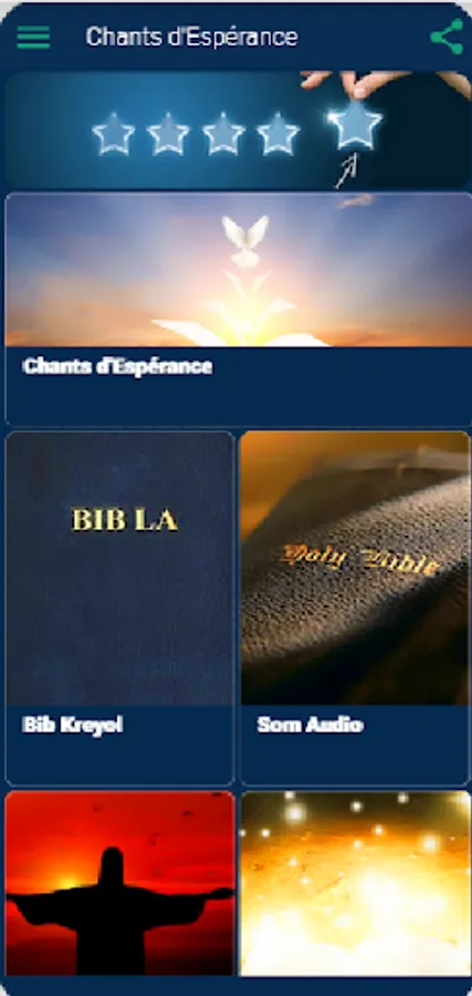 Chant D'Esperance Francais and Creole Complet 9 parties en Haitian Creole. All Hymns and Bib Kreyol. Complete list with all chants d'esperance first available in haitien creole language and second in francais language. We bring you also two versions of the Holy Bible Haitian Bib Kreyol to make it easyer to use and to make from this app a all in one android application for haitian churches. God bless you!