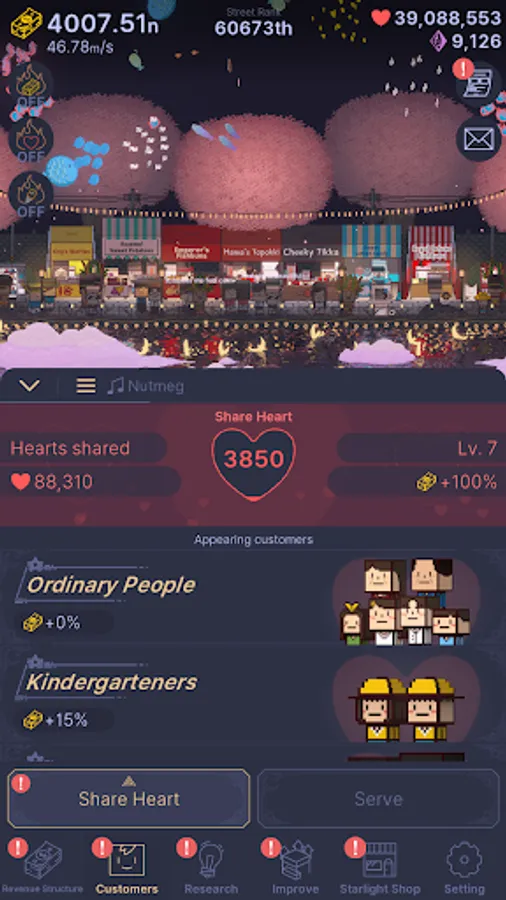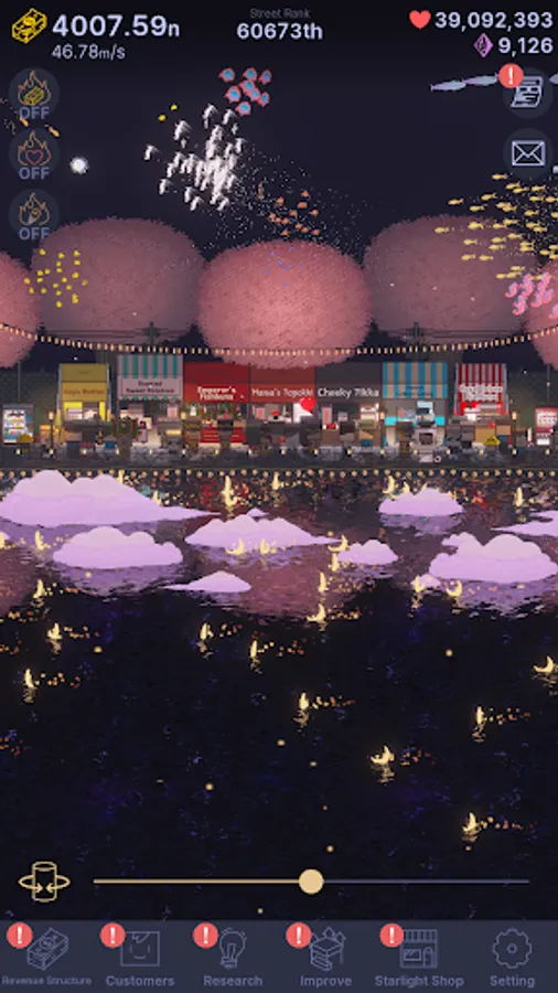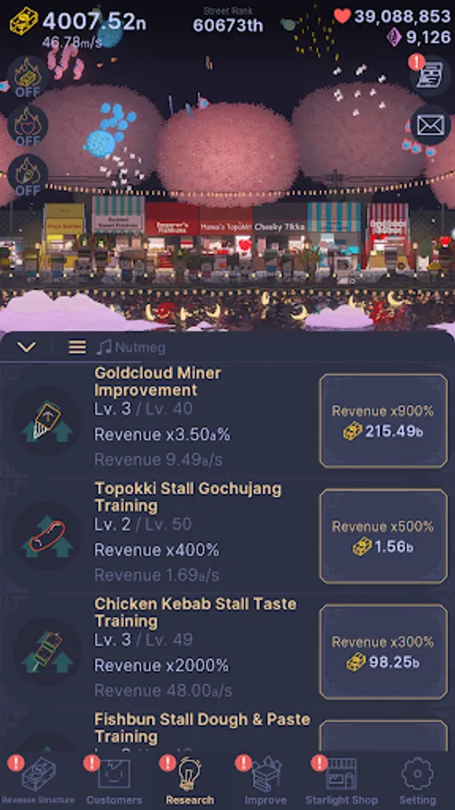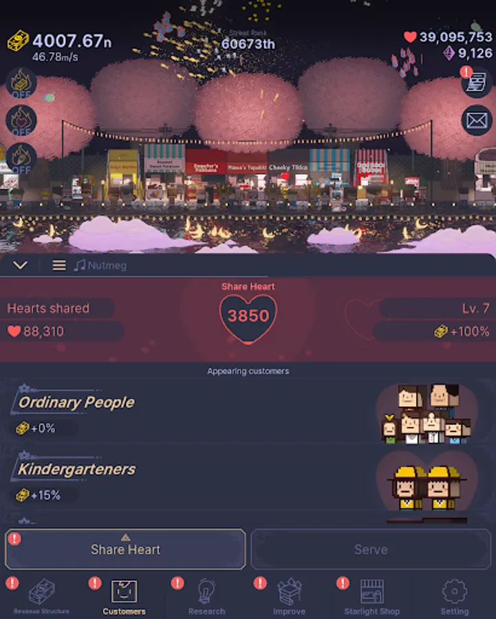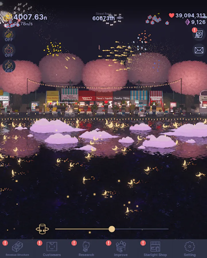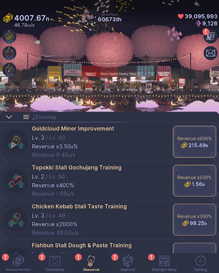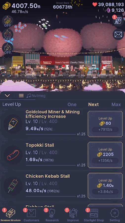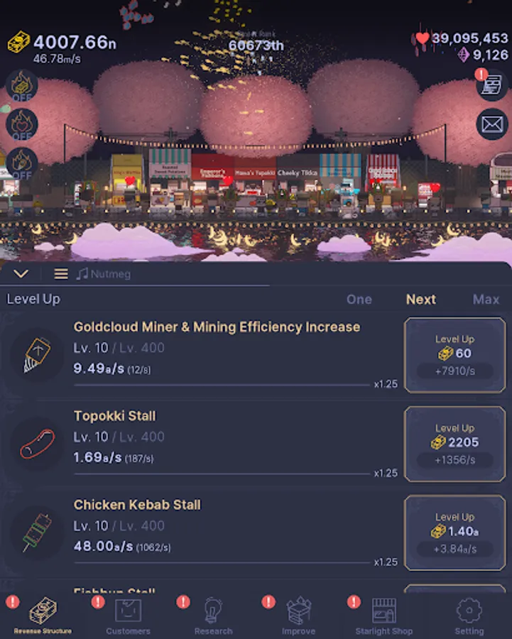 Tap the screen to mine Goldcloud ore and build stalls to increase your Revenue.
