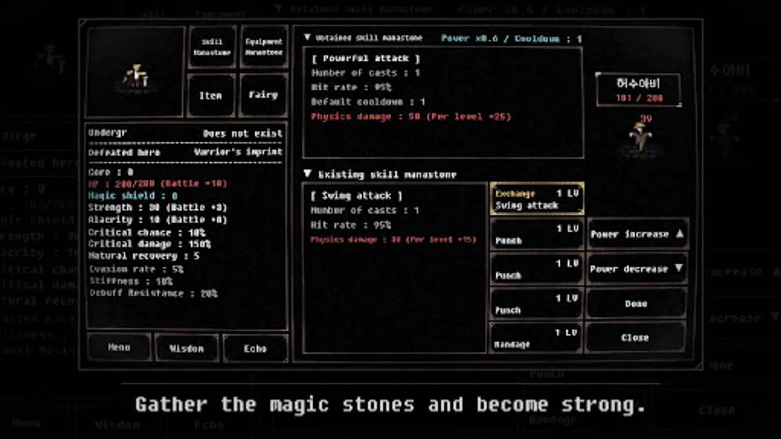 In the underground dungeon, there are technical manastones, equipment manastones, and items.