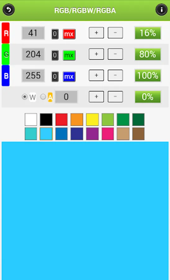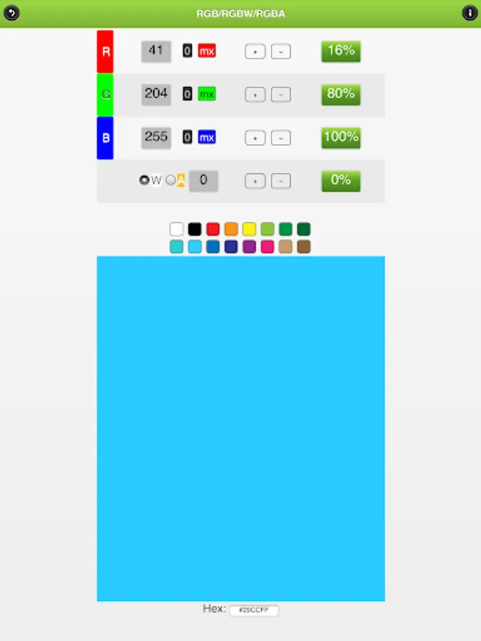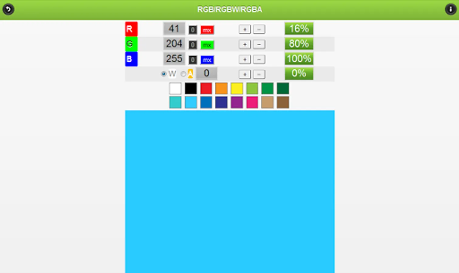 - Lights: DMX channel, RGB/RGBW/RGBA and CMY