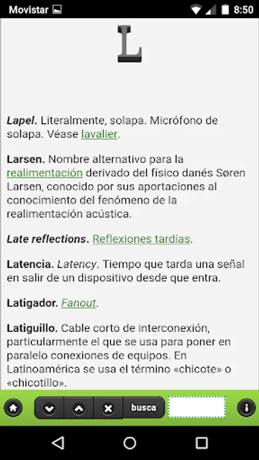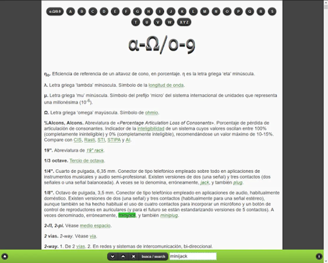 PAglosario is an offline English-Spanish and Spanish-English dictionary will be useful to those trying to reach into the world of sound reinforcement in Español, including a range of terminology used across the Spanish speaking universe
