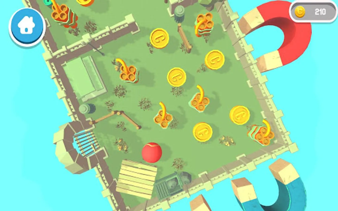 Magneto Ball is a game with unique gameplay. With the help of magnets, you need to guide the ball from start to finish, passing all sorts of obstacles. Collect coins along the way and don't fall into traps. In the future, you will be able to buy large and small balls to complete different parts of the levels.