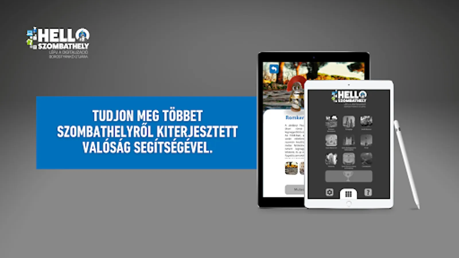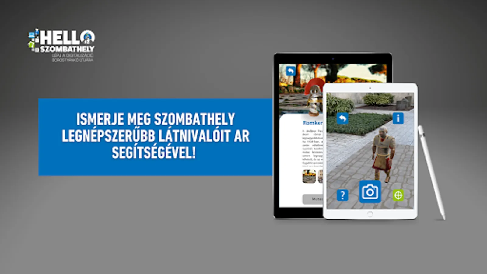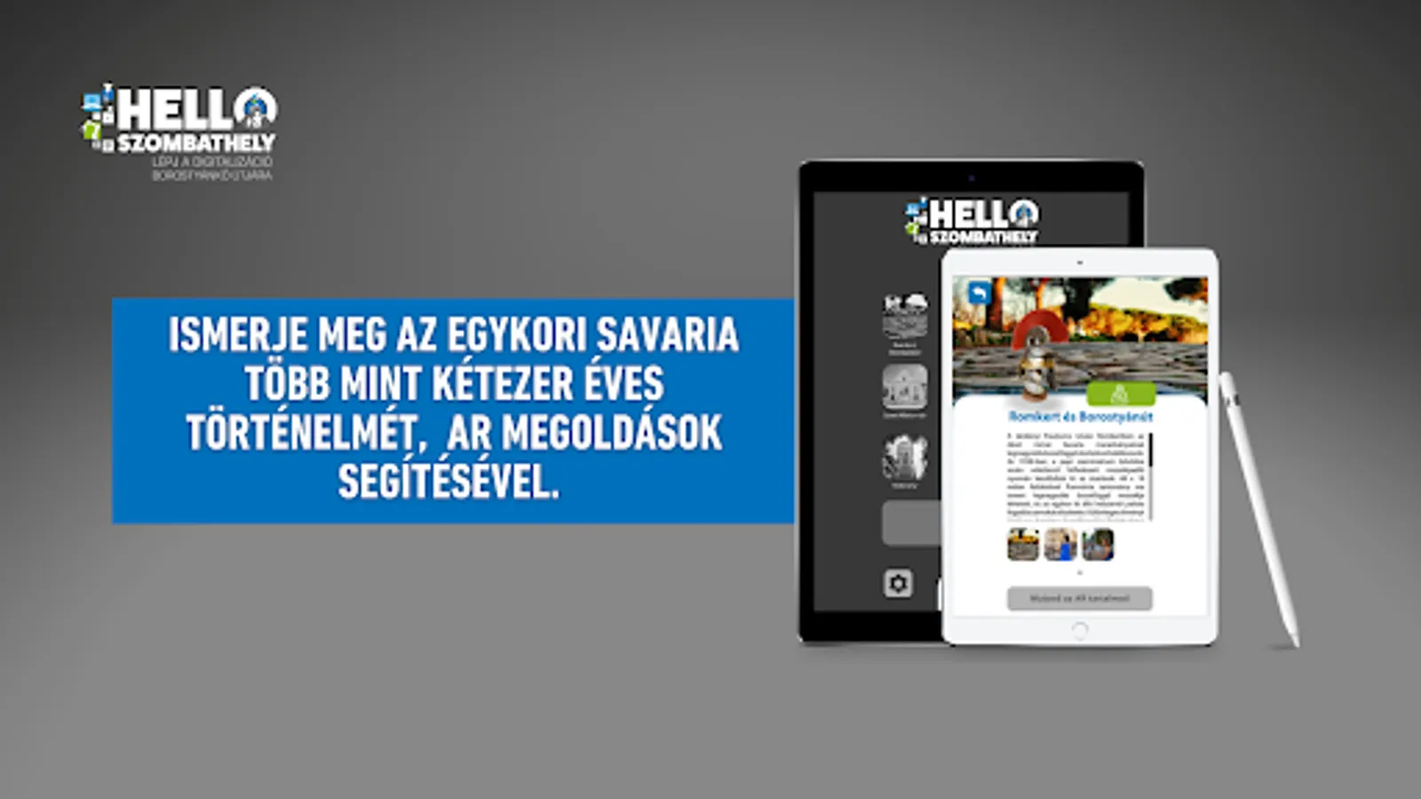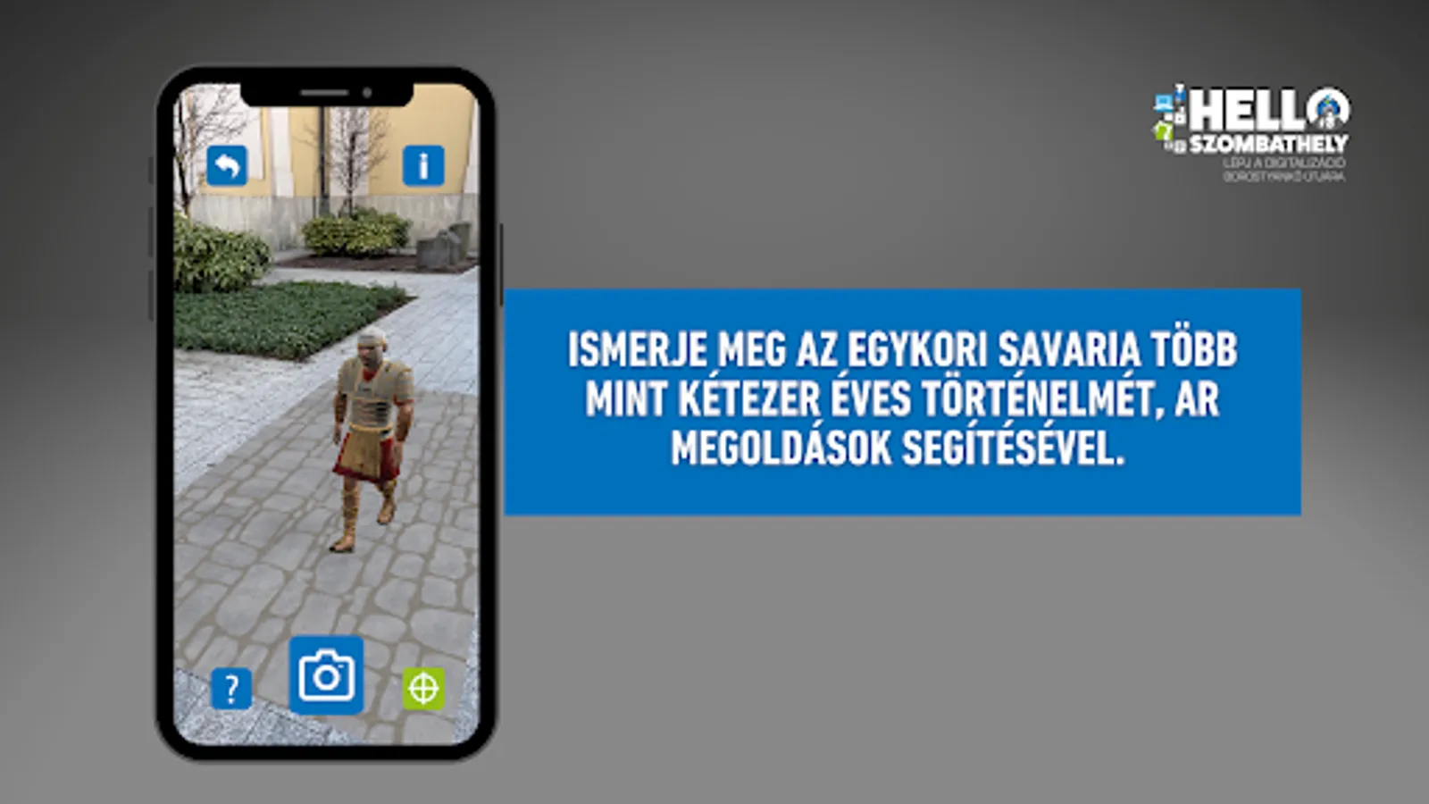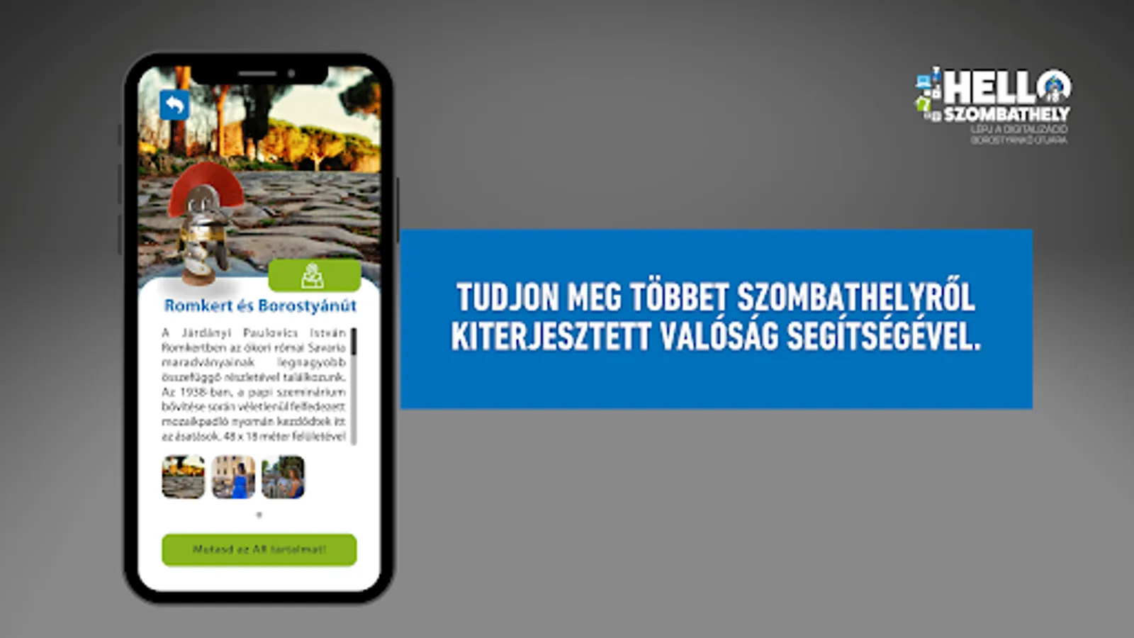 The Hello Szombathely application is an innovative digital tourism service, which is a good opportunity for the local population and those who come to the city to expand their knowledge within the framework of leisure activities, and strengthening the identity of local residents as well as providing group adventures. With the application, the user can learn about the more than two thousand years history of the former Savaria with the help of an experience-based augmented reality (AR) solution.