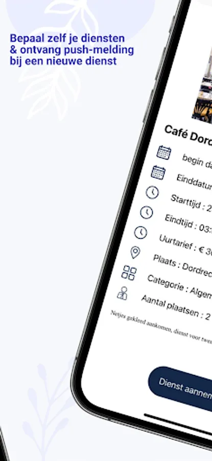 Speciaal ontworpen voor de PB Security medewerkers: de diensten-app. Ontvang pushmeldingen zodra er een nieuwe dienst beschikbaar is, bepaal zelf welke diensten je aanneemt en krijg uitgebreid informatie over je dienst.