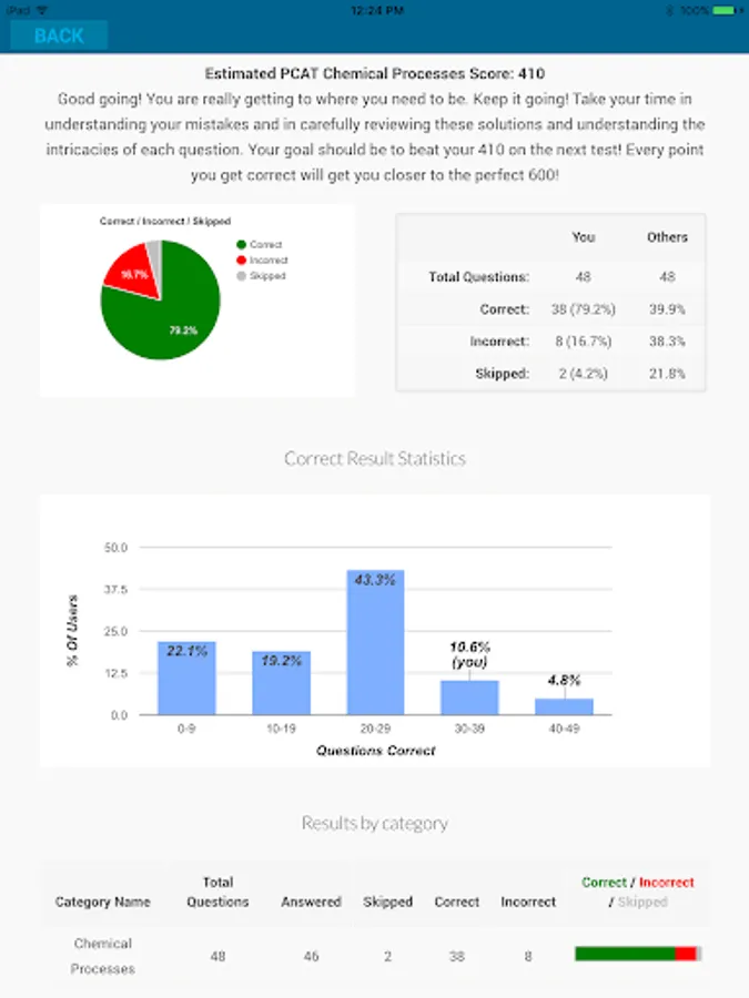 • Generate comprehensive analysis reports to find areas where you can improve your PCAT Scores