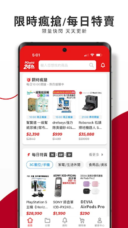 The PChome24h Shopping App is tailored for mobile devices, making it easy to shop anywhere, anytime.