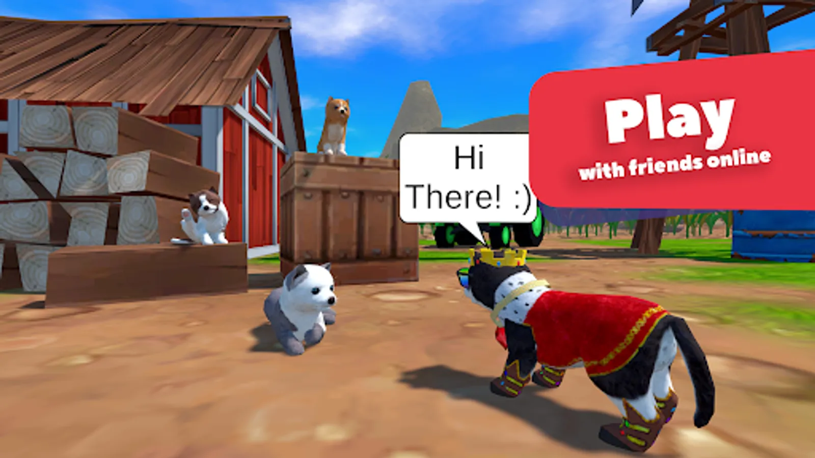 Our adventure 3D game allows you to choose a domestic animal of a desired breed, to play with friends and their cute pets online in real time thanks to the multiplayer mode. Make friends in our puppy games, create real clans together to protect your family. The higher level your pet and its family is, the more breeds will be opened for you.