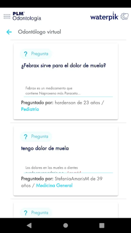 In this application the dentist will find all the material that Warterpik and PLM have developed so that health professionals can recommend and teach their patients the benefits of this device helped by videos and scientific information, additional will find the congresses and exhibitions of their specialty , atlas for explanation to the patient, clinical research guides and the PLM drug search engine, which will help your daily consultation.