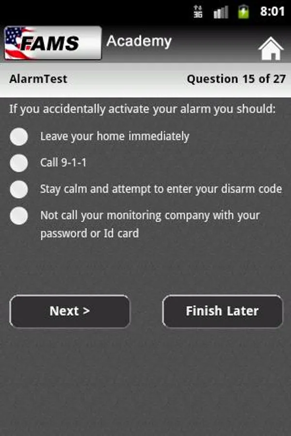 FAMS Alarm Awareness is a mobile assessment platform where citizens could download the app and check their understanding of the ordinances pertaining to false alarm’s published by the City.
