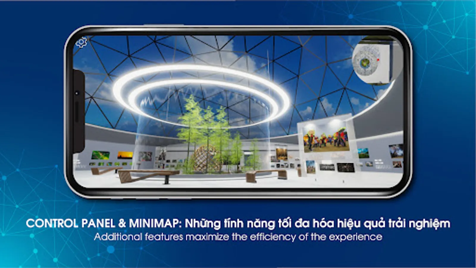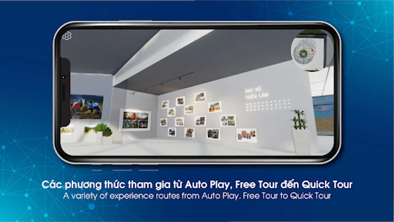 You can view the exhibition online using the app or access the web version to experience the exhibition online. The gallery can be viewed in 3D or in virtual reality using VR glasses. The application is provided with both Vietnamese and English versions.