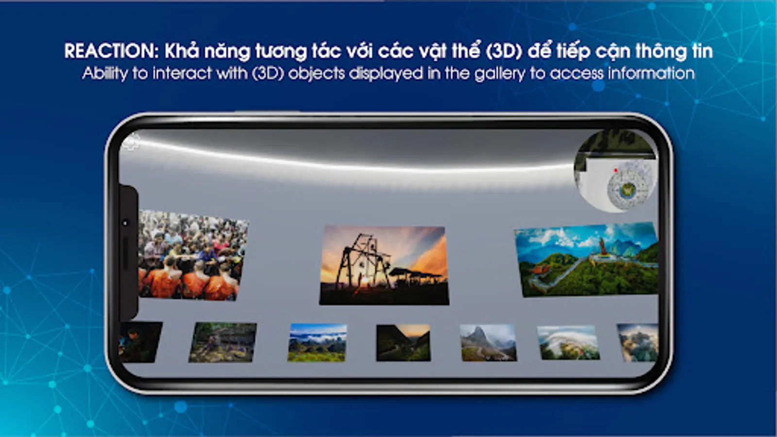 - REACTION: The ability to interact with (3D) objects displayed in the gallery to access information.