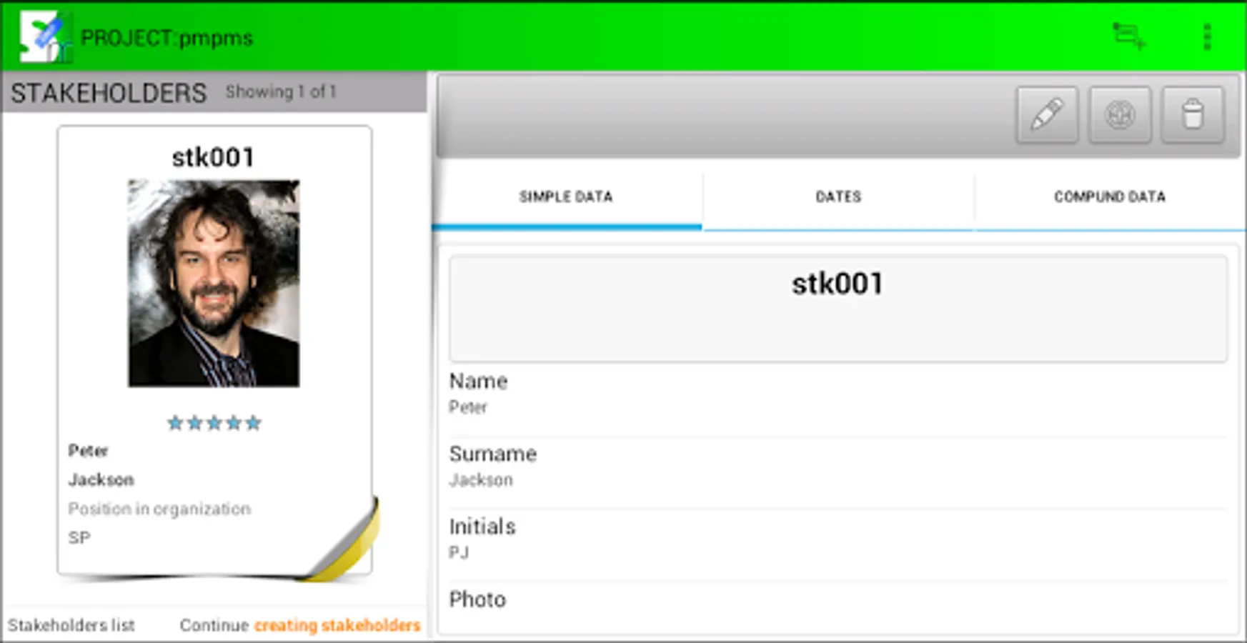 Mobile PMP Stakeholders Management Suite (PMPMSSM) is the second of the applications that are PMP Mobile Suite. It is designed to assist in the tasks related to stakeholders management (collection, monitoring, documentation generation,) and is fully based on the PMI ® methodology reflected in the PMBOK ® standards.