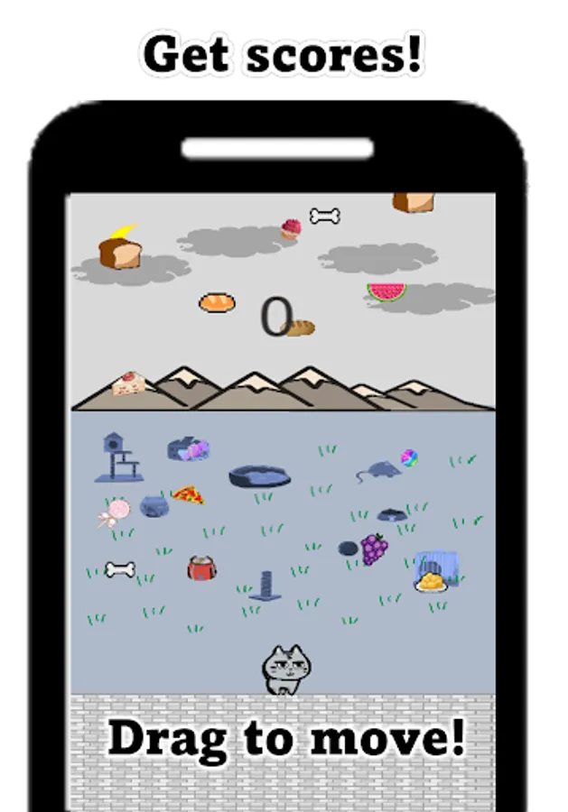 You can get score when cat eats foods.