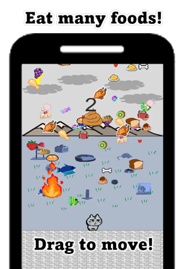 Drag foodcat to eat various foods!