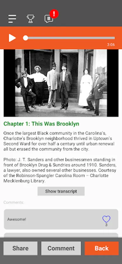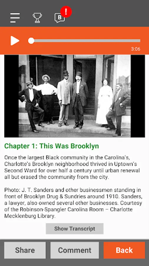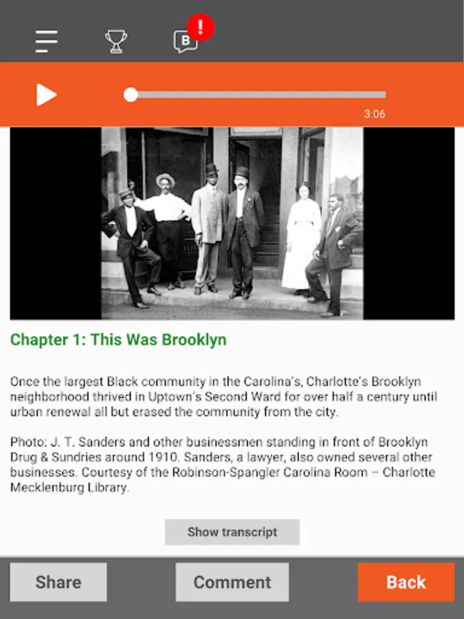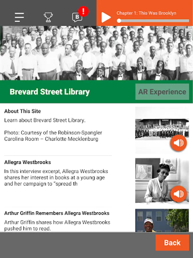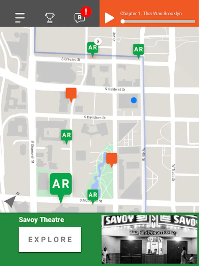 Your first journey within the app is an immersive GPS-based experience of Charlotte’s Brooklyn neighborhood, once the largest and most vibrant Black community in the Carolinas.