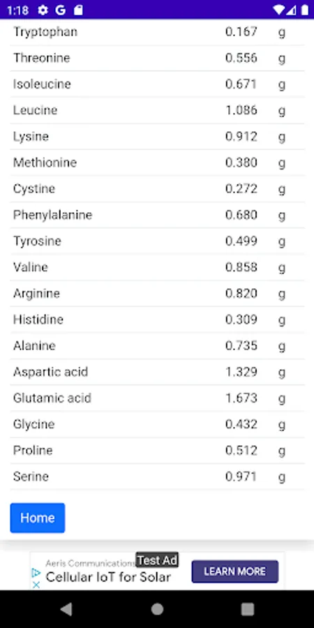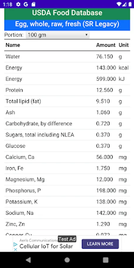 # Complete listing of all Nutrients in the food item
