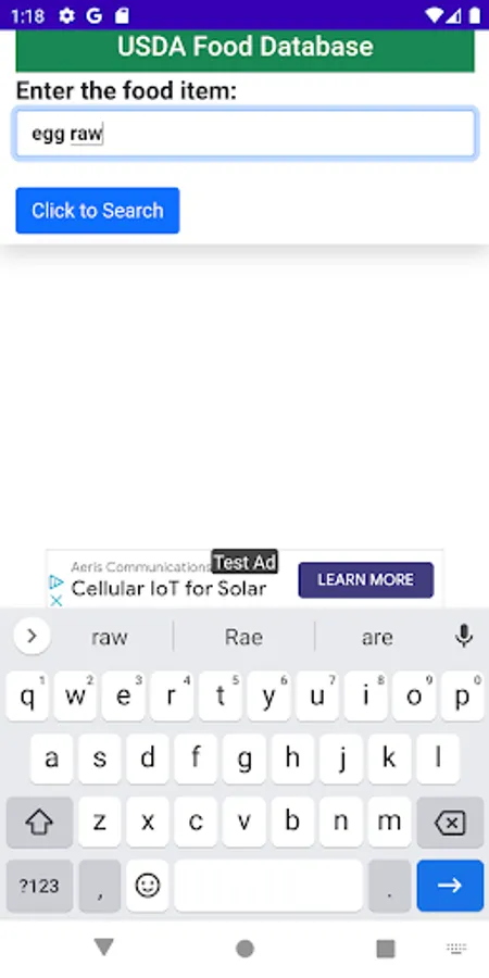 # Search the database on any food item