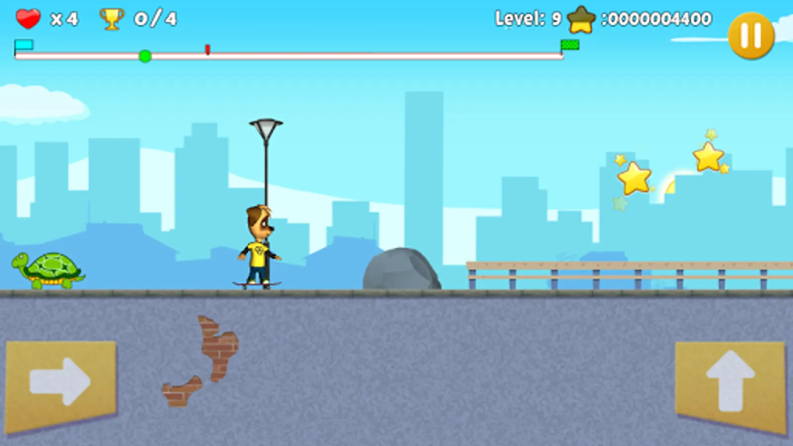 Take skate on and go! Along the way, collect all bonuses, stars and cups, jump over obstacles on its way, and perform a variety of tricks on a skateboard. Earn points and unlock new levels. The game is available 2 zones, each with 30 levels with a wide variety of landscapes.