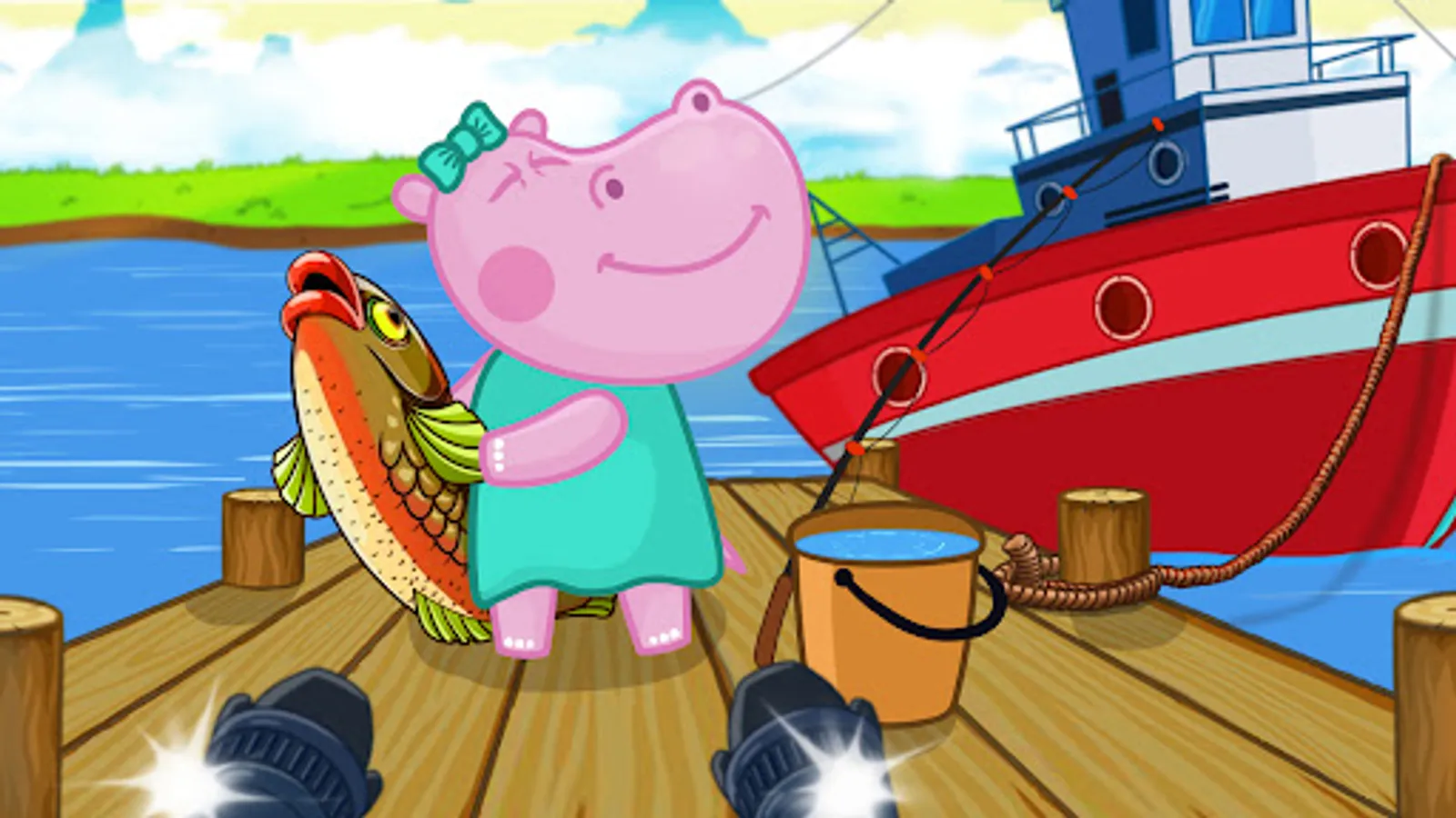Adventures with funny sailors are waiting for you. The aim of the game is to catch fish for a festive table. Mommy is waiting for her favorite sailors. But the task is not so easy. She doesn’t need any ашір and there is limited time of course. Only teamwork will help to complete these tasks. That’s why Hippy and Daddy hope that kids could help them. But Hippo is not a very skilled sailor.