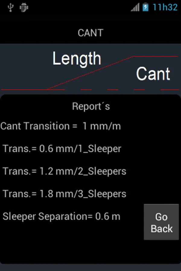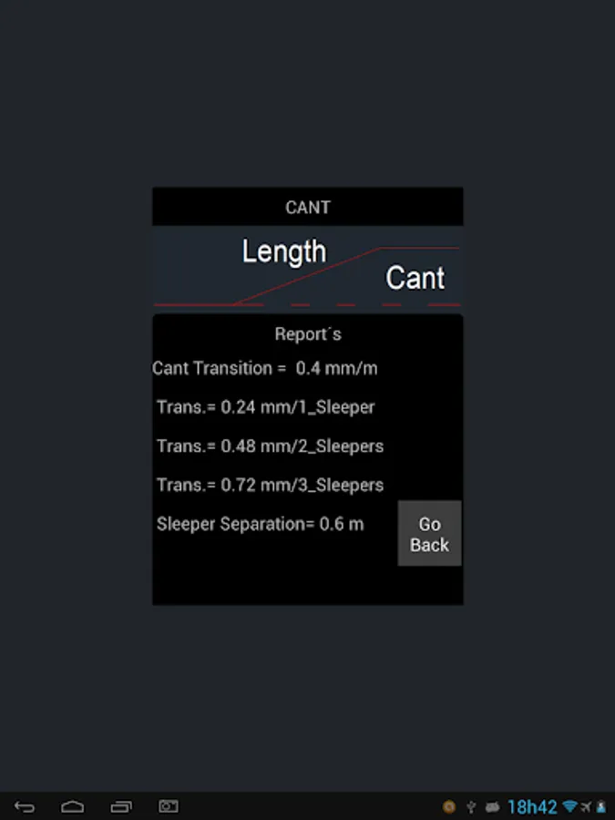 So this is calculation of TRANSITION from knowing the LENGHT of the transition and CANT.