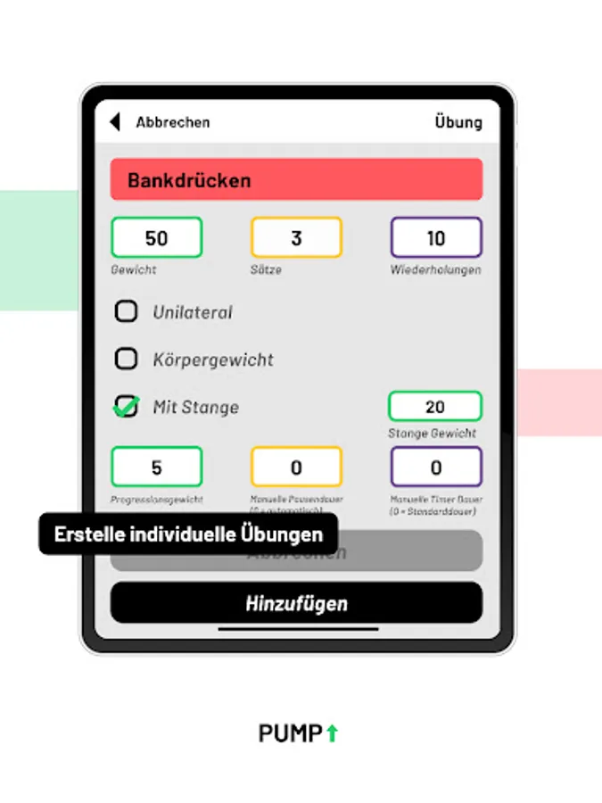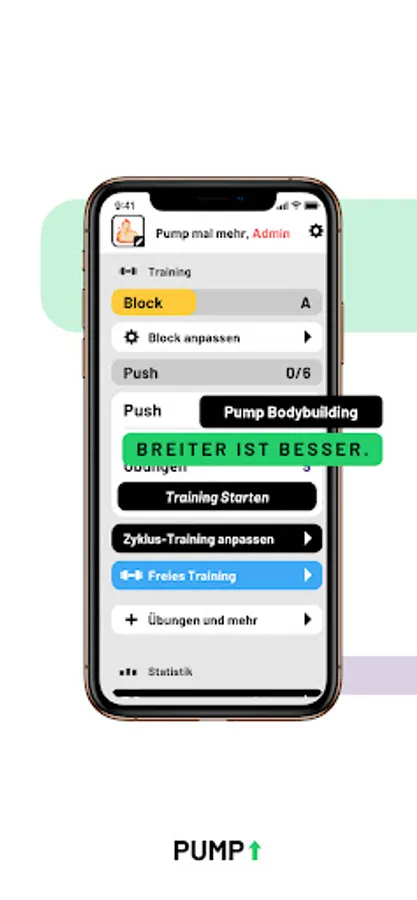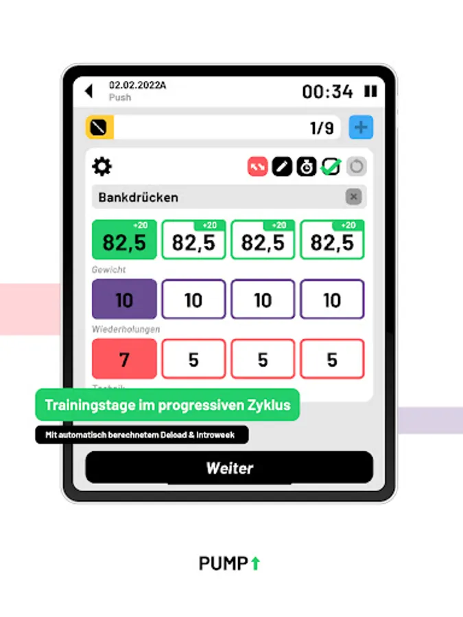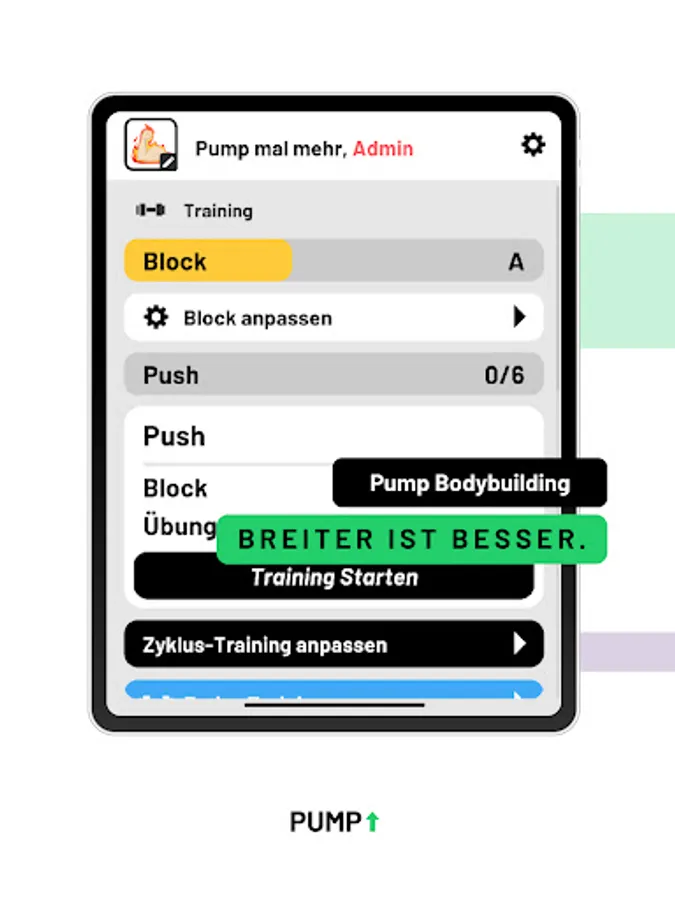 Pump is a user-centered application for strength athletes and bodybuilders. It is based on the principle of cyclical and progressive training.