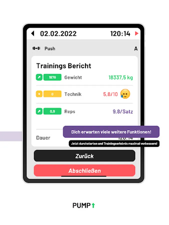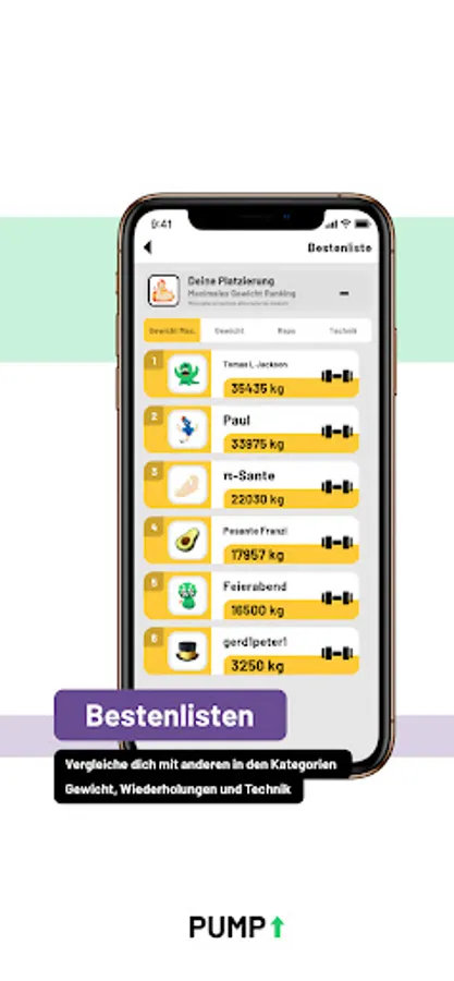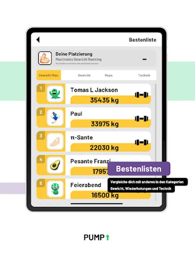 New: Leaderboards! Compare yourself to other PUMP users in the 3 categories: weight, repetitions and technique.