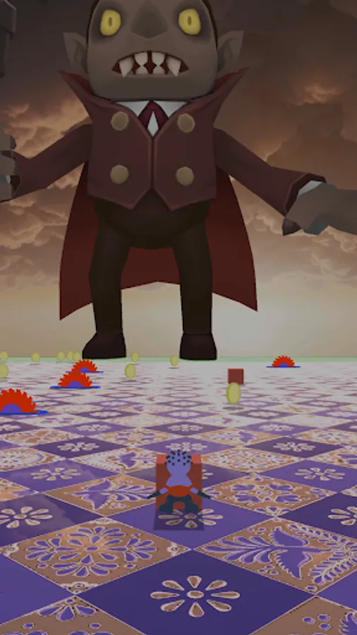 Finish levels by reaching the finish line. Hide from the vampire by squatting behind the shelter blocks. And avoid various traps!