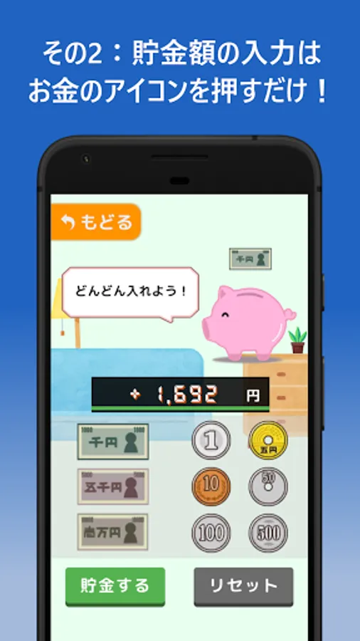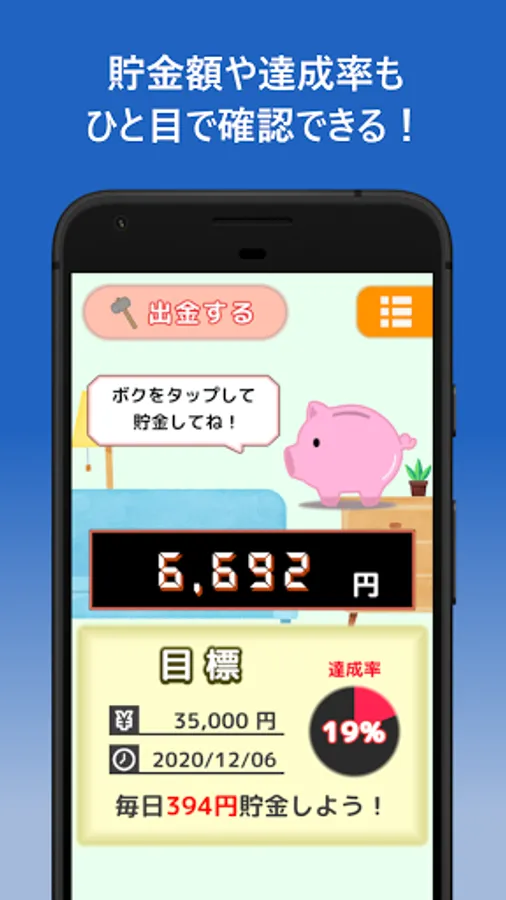 ◆ You can see "saving amount", "daily savings target", and "achievement rate" at a glance!