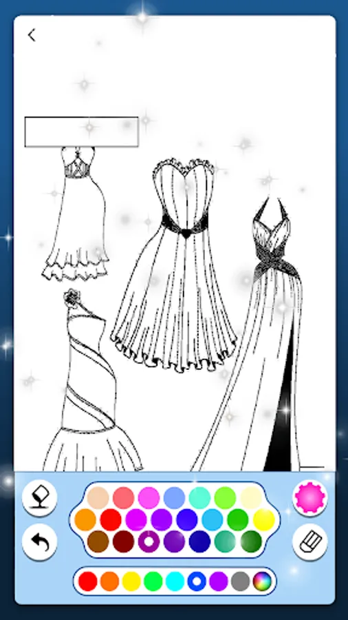 Dress Coloring Game for Girls is the world of princesses and wonderful dresses! Choose the most beautiful dresses and outfits to dress up Cinderella and the princesses. In this game, you can choose the perfect colors and options to design charming dresses.