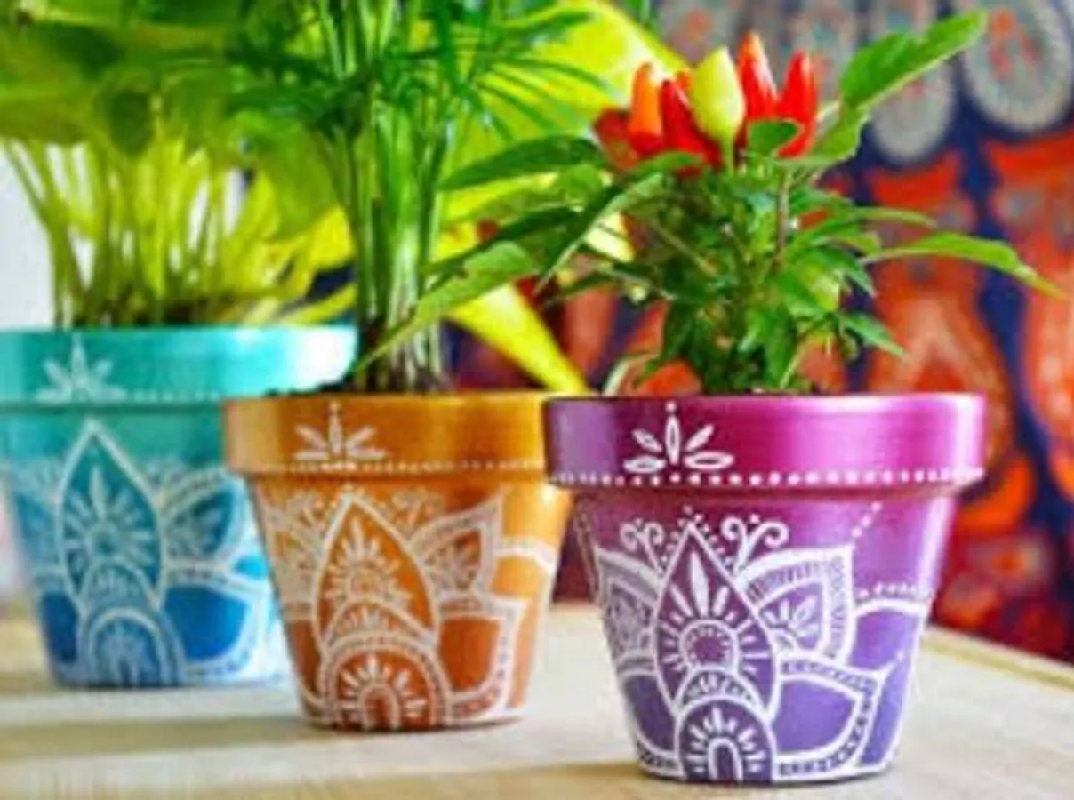 Apart from decorating your rooms with flower pots, having sweet-smelling flowers, you can paint creative designs on them for an attractive and elegant appeal. You can opt for simple clay pots.