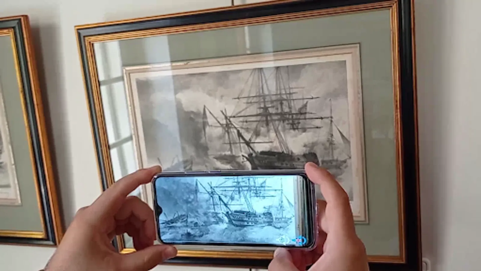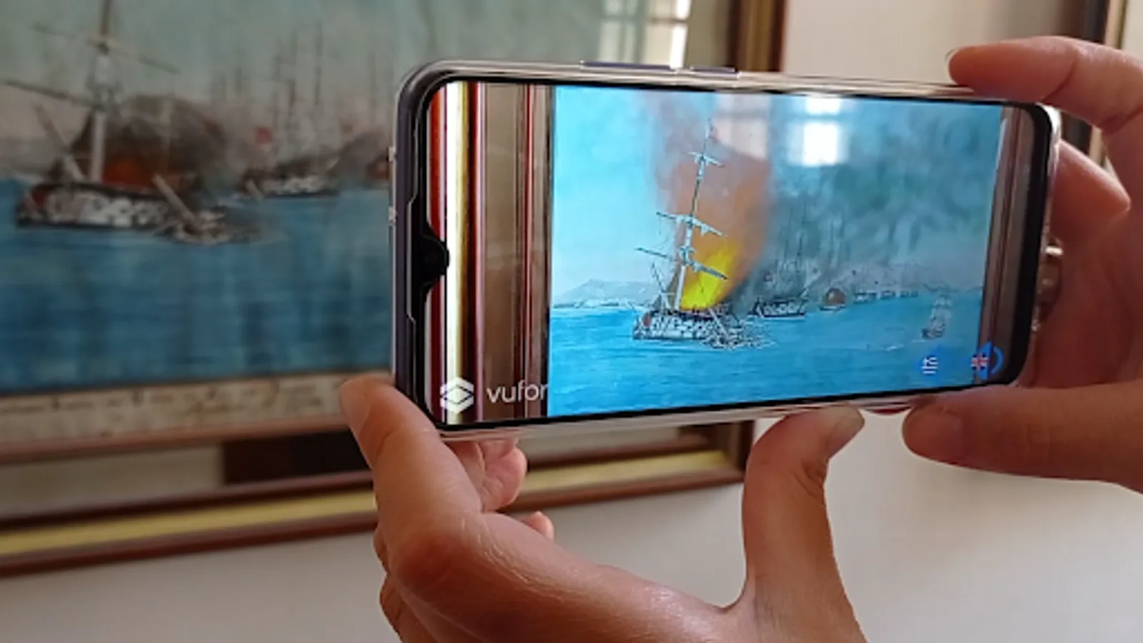 Open the application and browse the Nautical Museum of Chios. Find the 6 paintings related to the Greek Revolution. They will come to life immediately!
