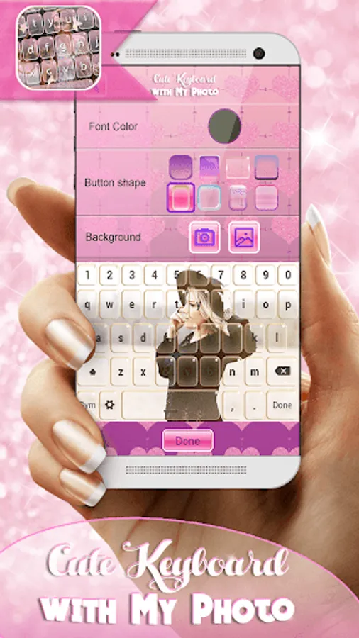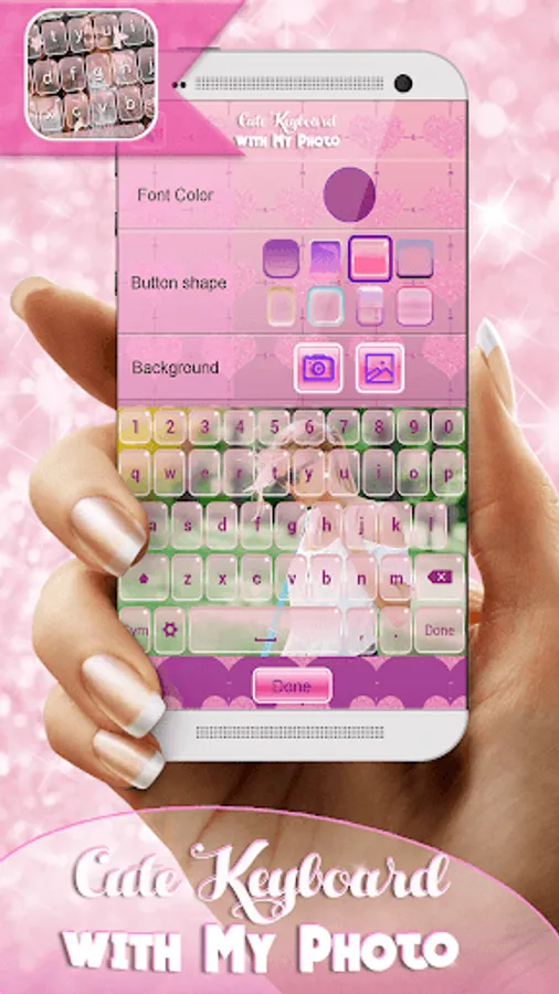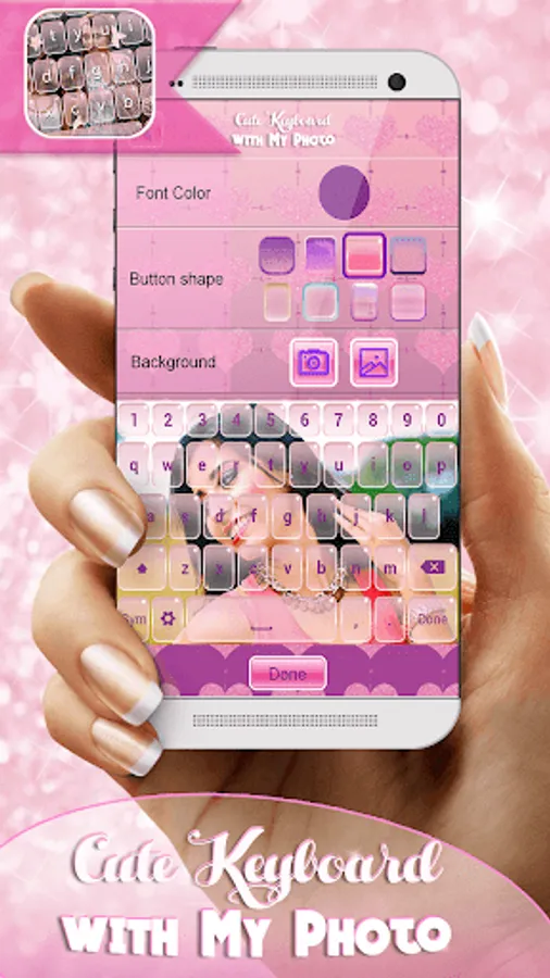 Now that you can make your own keyboard with picture from your gallery, you no longer have to opt for pre-made love backgrounds and illuminated themes! Be the first to accessorize your mobile phone using our beautiful designs with cool keyboard emoji! Still haven't installed this mobile keyboard changer? Hurry up and see how your beauty camera picture looks on your phone keyboard. After all, it's about time you discarded your old keyboard and experimented with our cute girly themes. Free “keyboards for Android” tablets and phones!